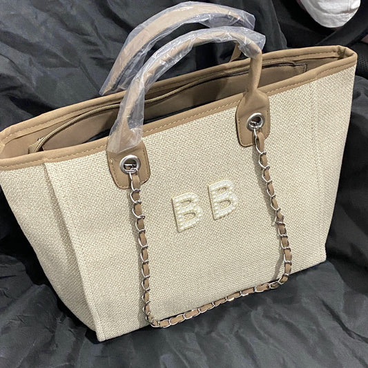 Personalised Chain Monogram Canvas Tote Bag Shoulder Bag Ladies Custom Handbag Birthday Hen Gift Bride Bridesmaids Gifts For Her