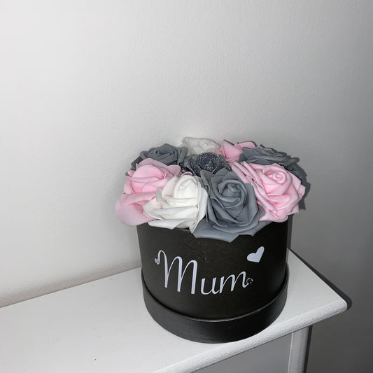Mum Pink & Grey Flower Rose Box