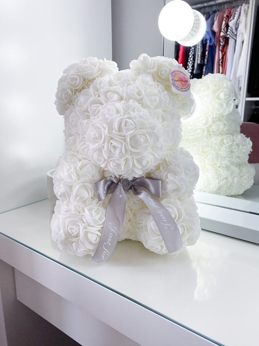 Medium White Rose Bear