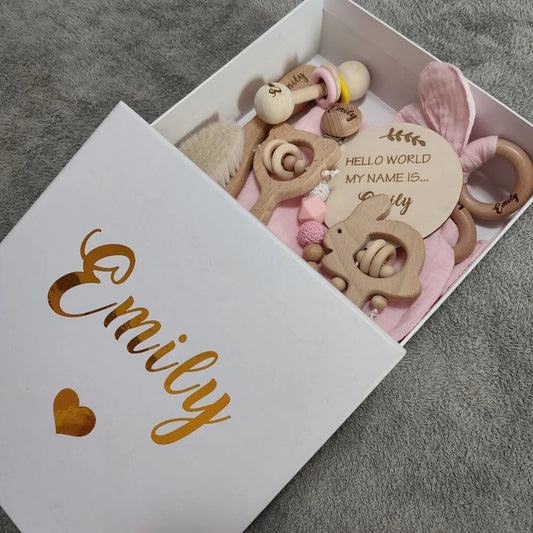 8 Pieces Of Personalised Name Newborn Rattle Toy Gift Set